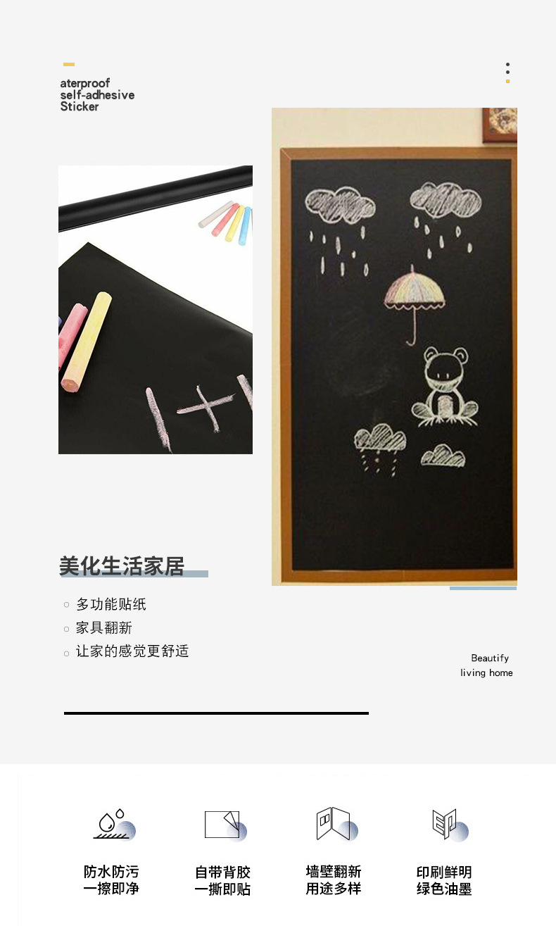 黑板牆貼兒童家(jiā)用黑板貼定自粘